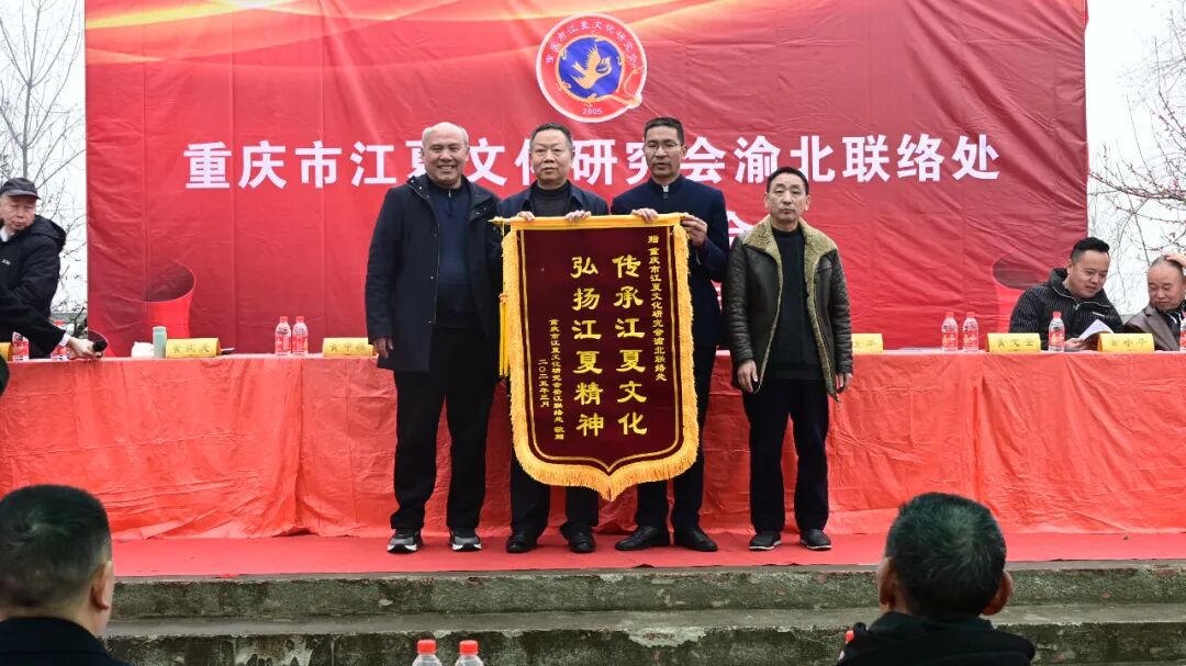 各区联络处代表依次登台,向渝北联络处赠送锦旗及文化礼品,主城、江津、永川等地代表纷纷发言,传递“同根同源、共谋发展”的祝福。渝北联络处主任黄中模在讲话中强调,将致力于搭建江夏交流平台,推动文化研究与乡村振兴深度融合。